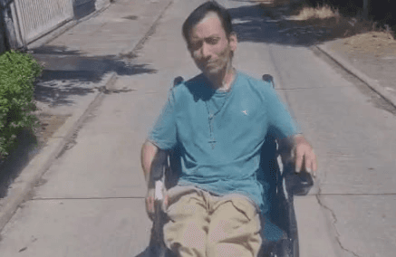 Tiene parálisis cerebral. Perdió todo en los incendios, incluida su silla de ruedas eléctrica. Hoy ya la tiene devuelta.